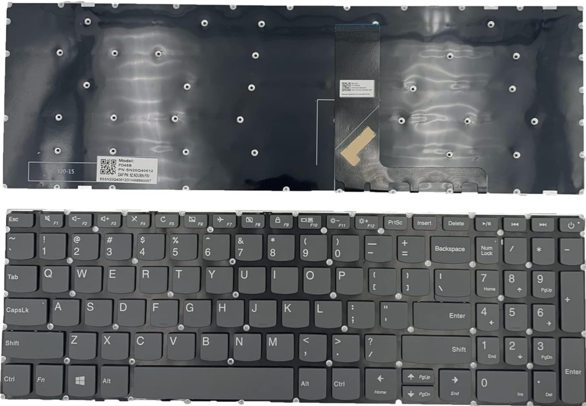 Thiết kế Cáp Giữa (Center Ribbon Cable): Vị trí cáp tín hiệu nằm chính giữa bàn phím, khớp hoàn toàn với khe cắm trên Mainboard của phiên bản 320-15 phổ thông.