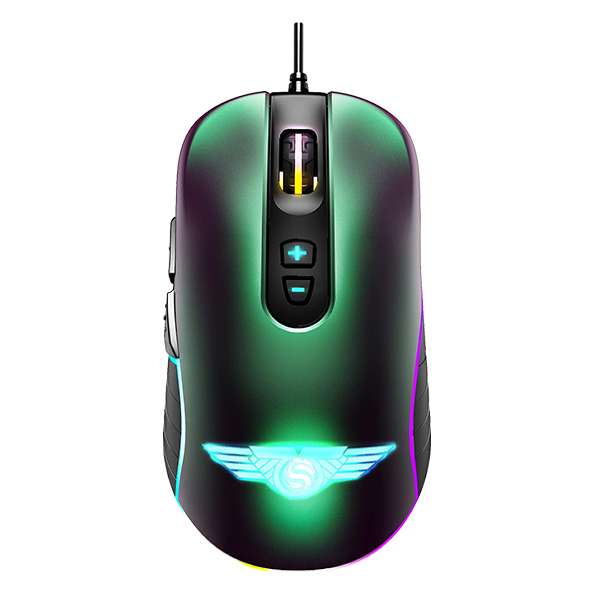 Chuột có 7 nút (5+2) có thể lập trình, giúp người dùng tùy chỉnh macro và thao tác nhanh trong game hoặc công việc.
