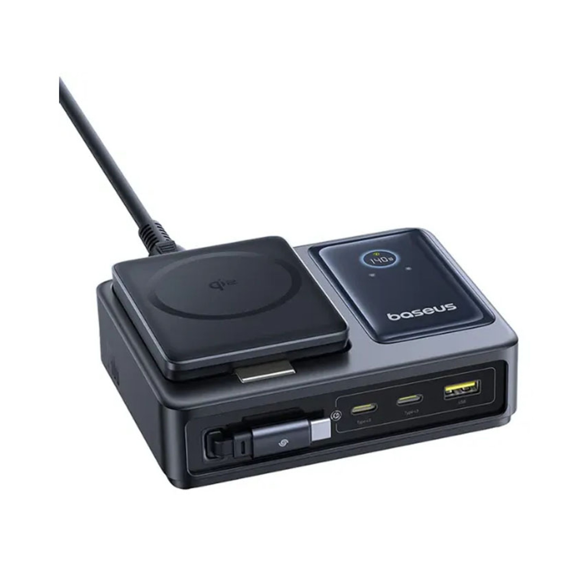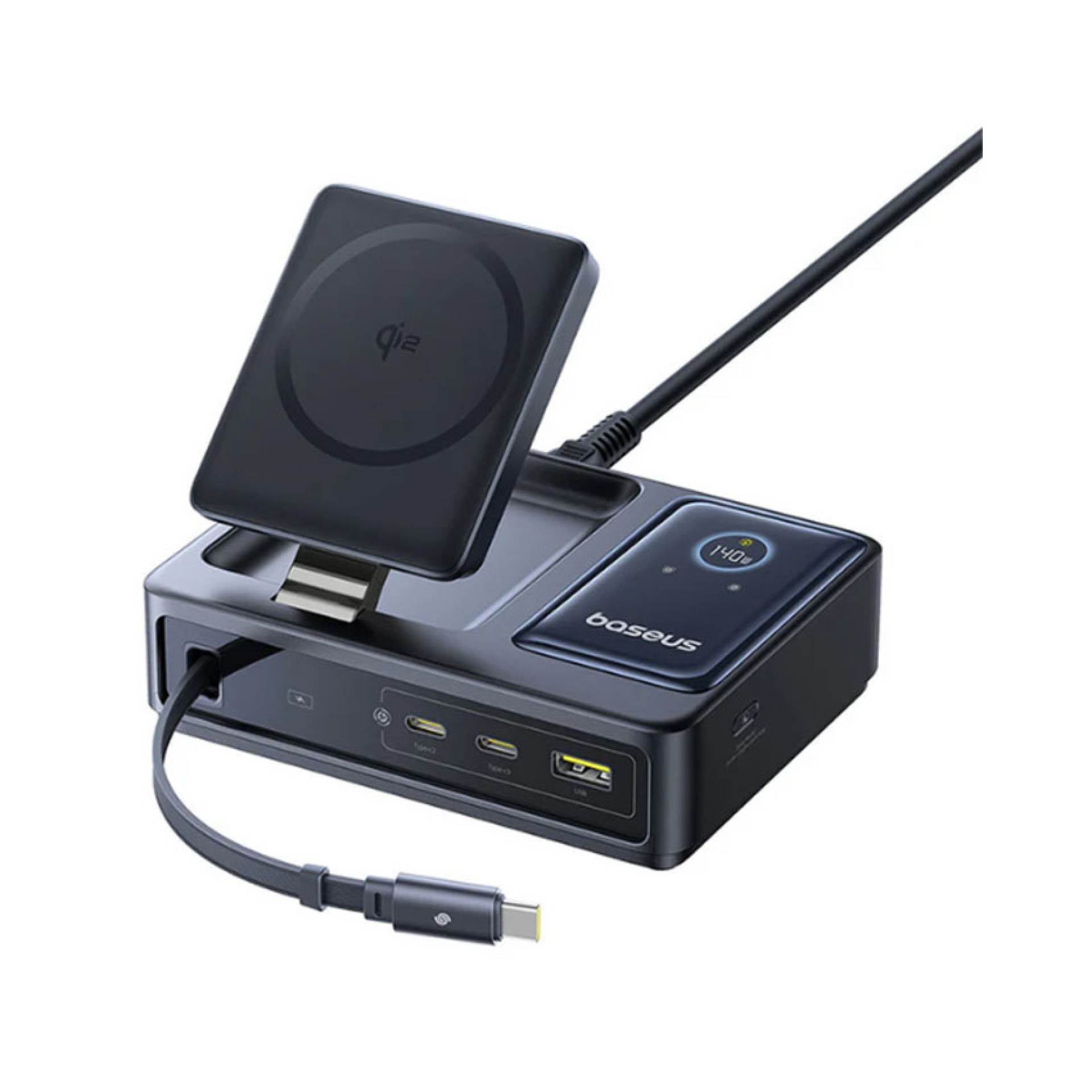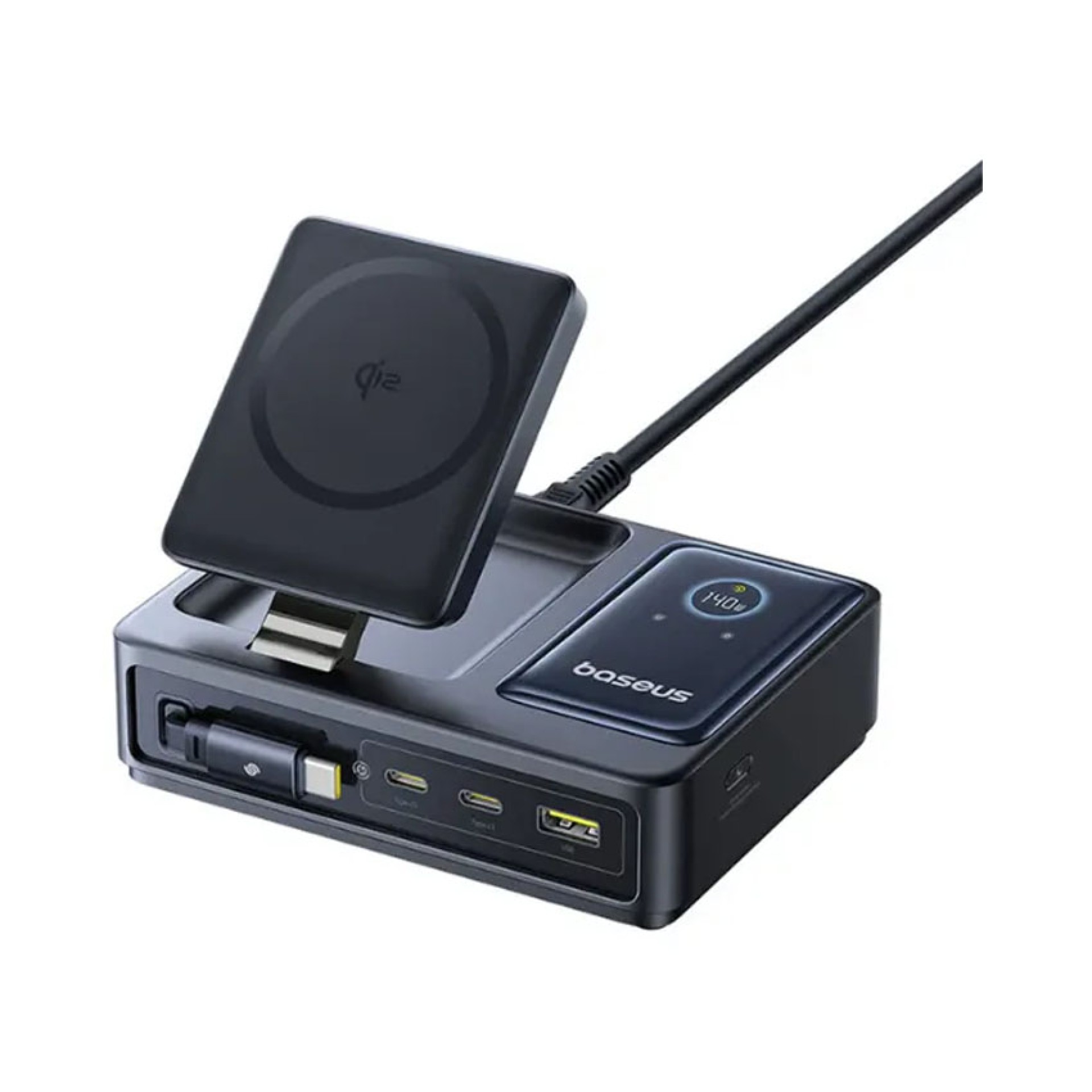 Đế sạc đa năng Baseus Nomos QI2 5 trong 1 kèm cáp Type-C rút gọn 140W US