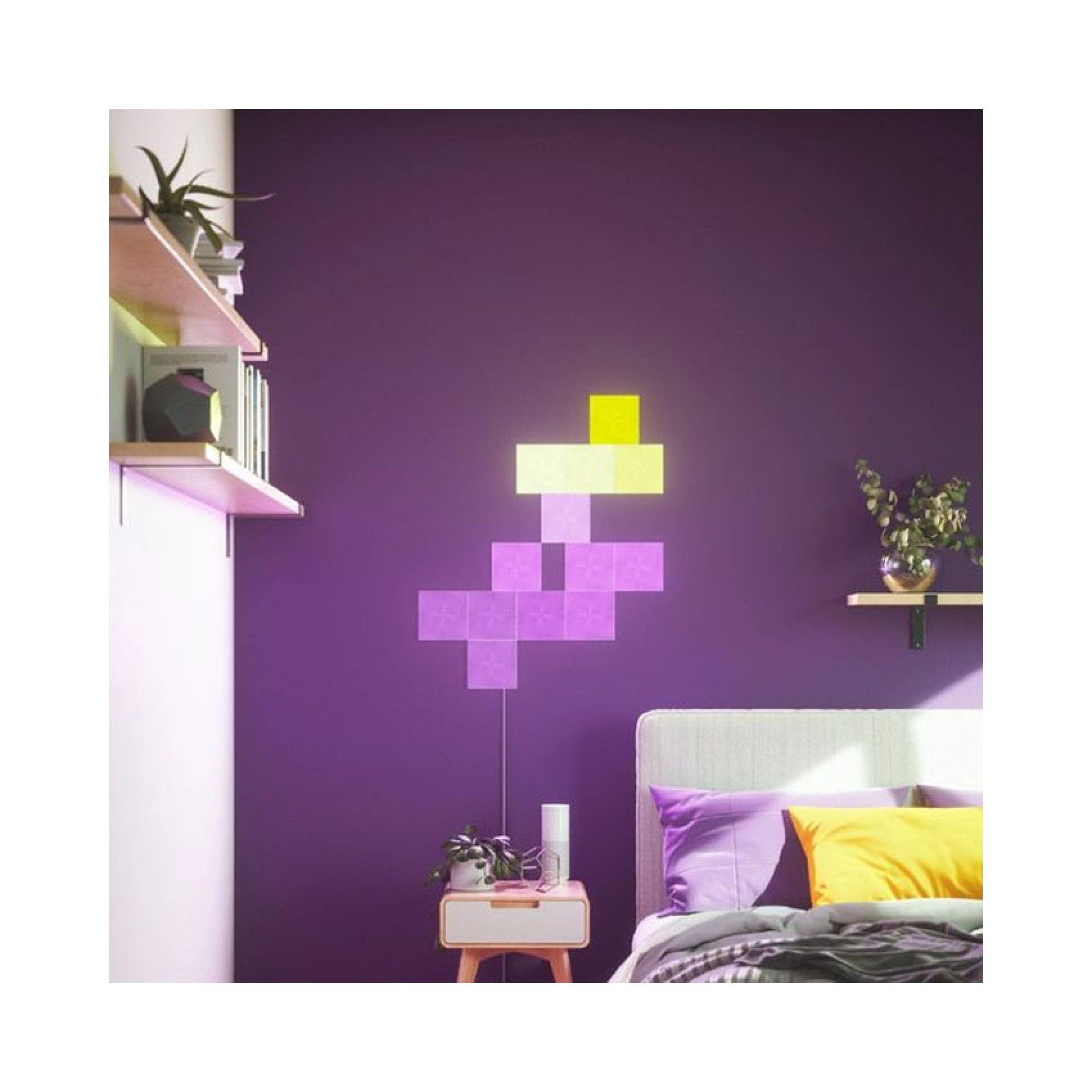Dòng Nanoleaf Canvas nổi tiếng với thiết kế các ô vuông đối xứng, mang lại cảm giác cân bằng và hiện đại theo phong cách Pixel Art. Việc bổ sung thêm bộ mở rộng 4 miếng này không chỉ đơn thuần là tăng diện tích chiếu sáng, mà còn mở ra khả năng lắp đặt các hình khối phức tạp hơn, từ các dải LED trải dài đến những khối hình học 3D trừu tượng trên tường.