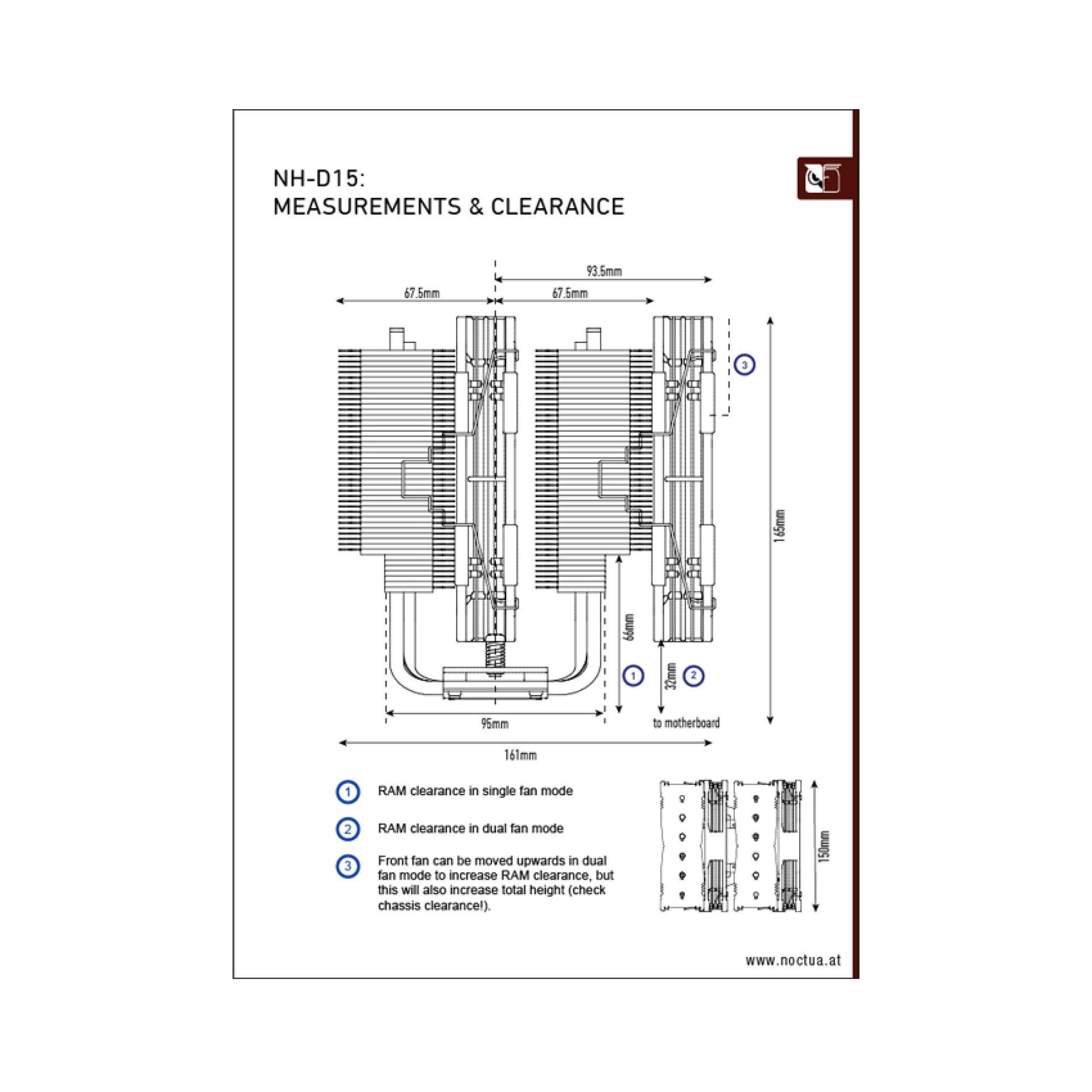 Lá nhôm mở rộng: So với người tiền nhiệm NH-D14, các lá nhôm trên NH-D15 đã được mở rộng từ 140mm lên 150mm, giúp tăng diện tích tỏa nhiệt và tối ưu hóa luồng gió từ quạt.