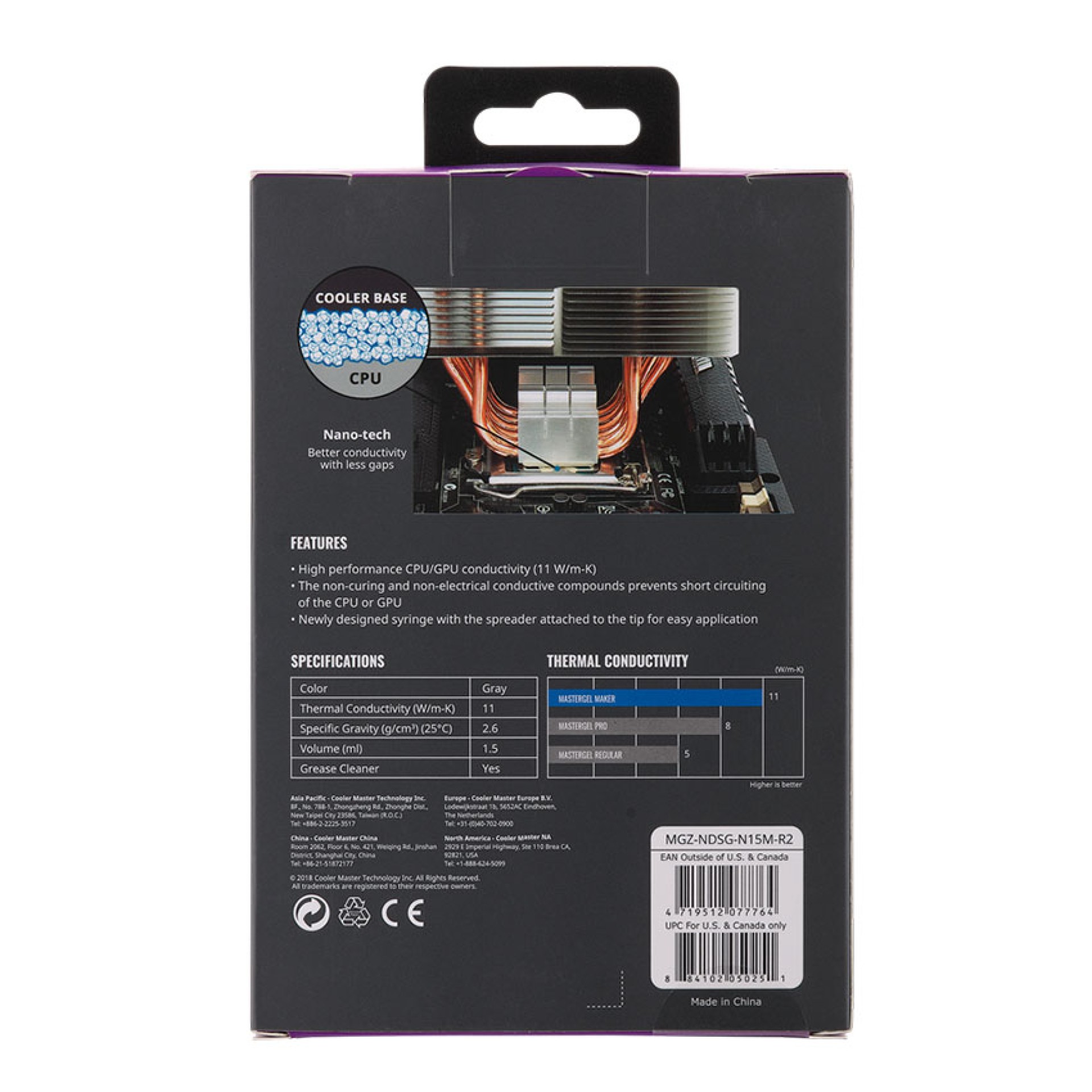 Hạt Nano Kim Cương: MasterGel Maker chứa các hạt nano kim cương siêu nhỏ, giúp đạt được độ dẫn nhiệt cực cao lên tới 11 W/m.k. Kim cương là vật liệu có khả năng dẫn nhiệt tự nhiên tốt nhất, giúp truyền tải nhiệt lượng từ chip xử lý sang khối tản nhiệt một cách tức thì.