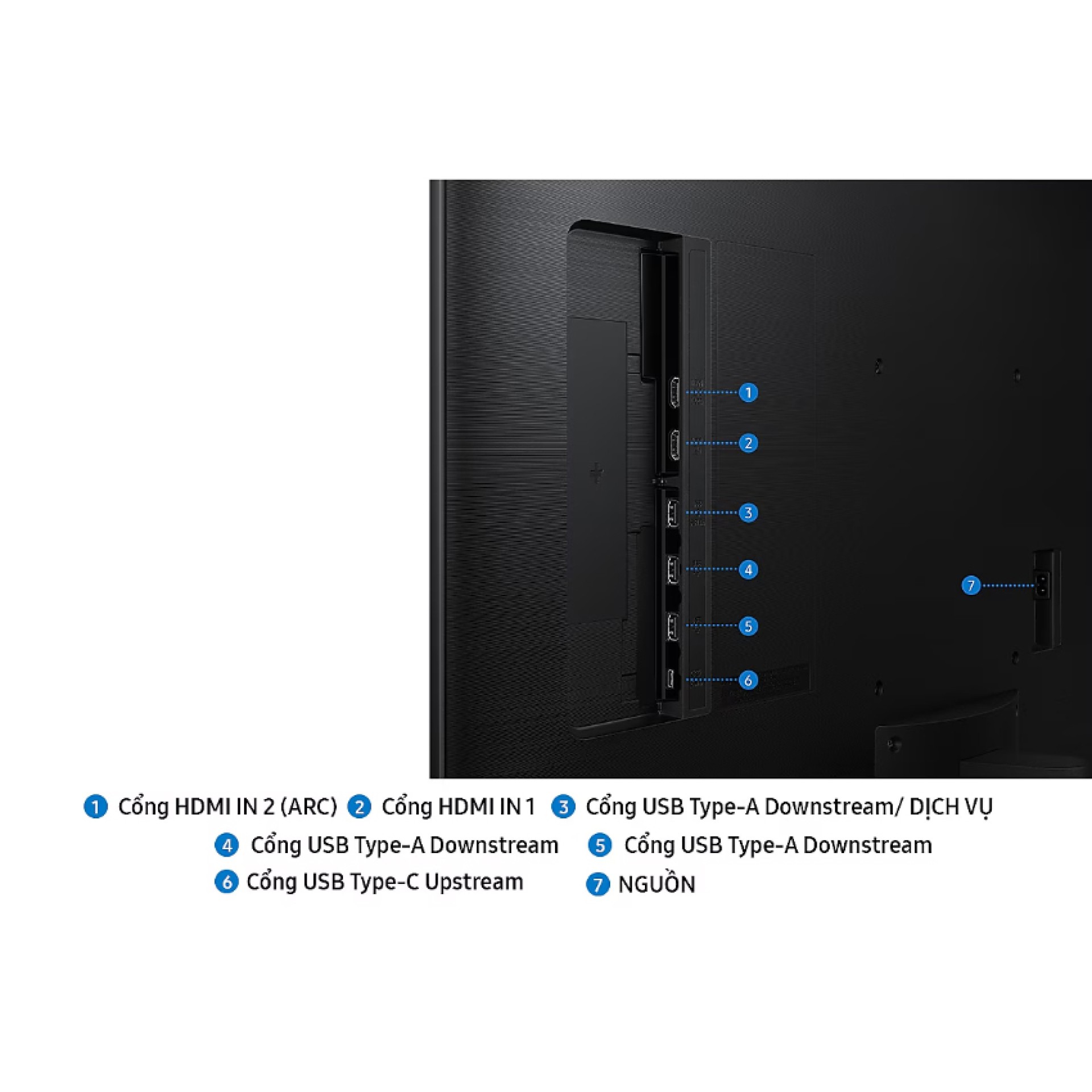Samsung M7 M70D được trang bị cổng USB-C đa năng, cho phép truyền tải dữ liệu, hình ảnh và sạc ngược cho laptop chỉ qua một sợi cáp duy nhất, giúp không gian làm việc luôn gọn gàng. Khả năng kết nối không dây cực kỳ mạnh mẽ với Wi-Fi, Bluetooth, AirPlay 2 và tính năng phản chiếu hình ảnh Tap View. Hệ thống loa tích hợp với công nghệ Adaptive Sound tự động tối ưu hóa âm thanh theo từng nội dung cụ thể, từ giọng nói rõ ràng trong các cuộc họp đến âm thanh sống động trong các bộ phim hành động, mang lại trải nghiệm nghe nhìn trọn vẹn mà không cần lắp thêm loa rời.