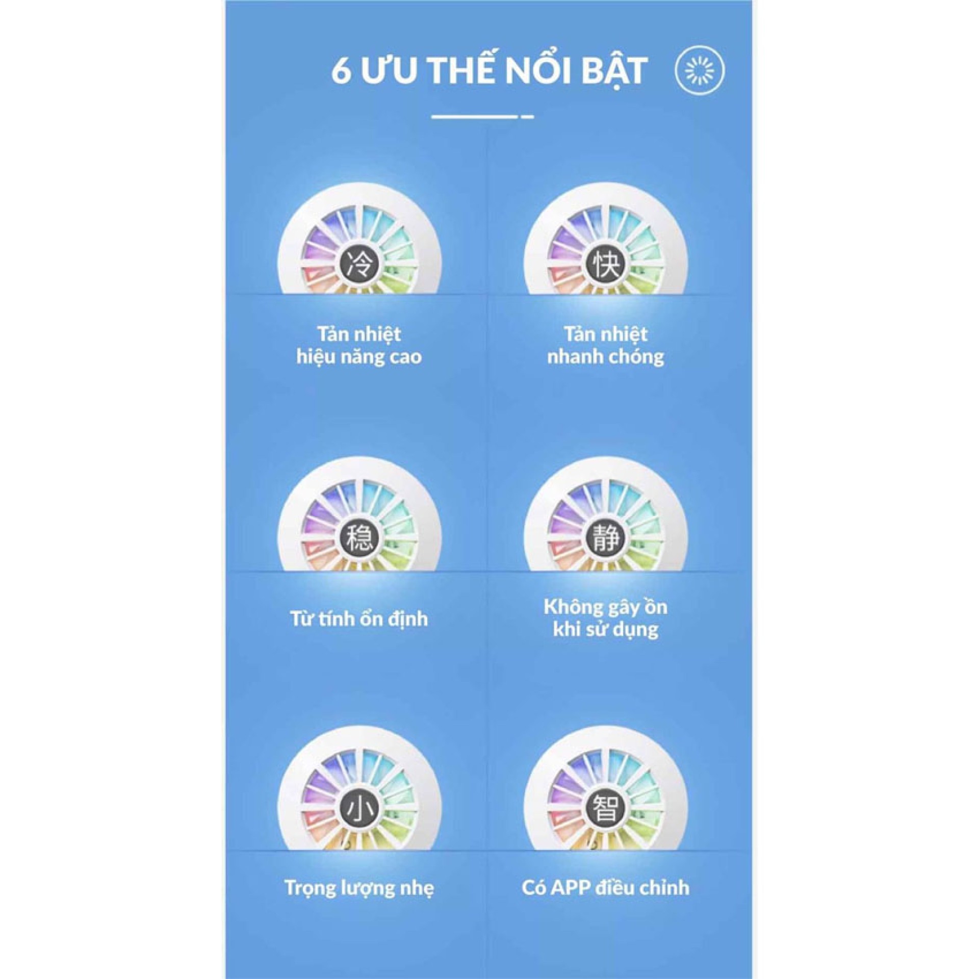 Quạt gió 7 cánh mạnh mẽ: Hệ thống quạt tốc độ cao phía sau giúp tản nhiệt nhanh chóng cho miếng sò lạnh, đảm bảo thiết bị hoạt động liên tục mà không bị quá nhiệt ngược lại.